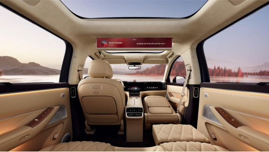 当用户驾驶时,HUAWEI XHUD抬头显示系统将AR导航与车速信息投射于前风挡,实现“目不离路”的全局掌控;休憩时,智能投影系统与32英寸幕布可一键切换车内空间为私人影院,结合AI语音助手与主题模式,为全家出行提供沉浸式乐趣。